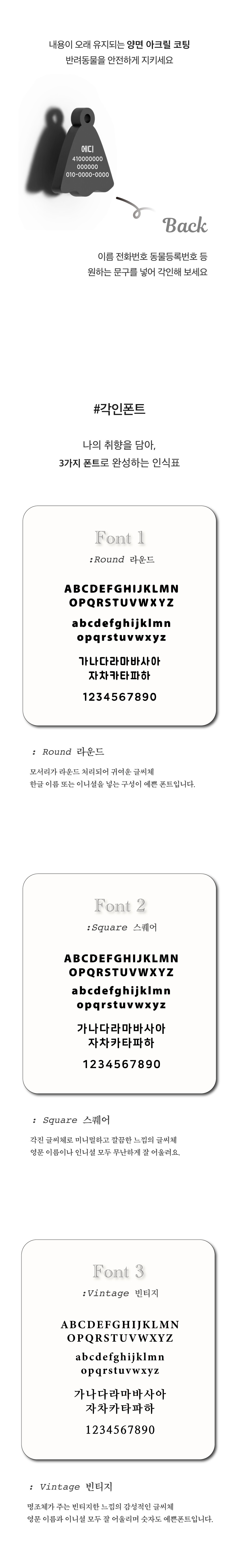 • 본 제품은 뒷면에 이름 / 전화번호 / 동물등록번호 각인가능합니다.