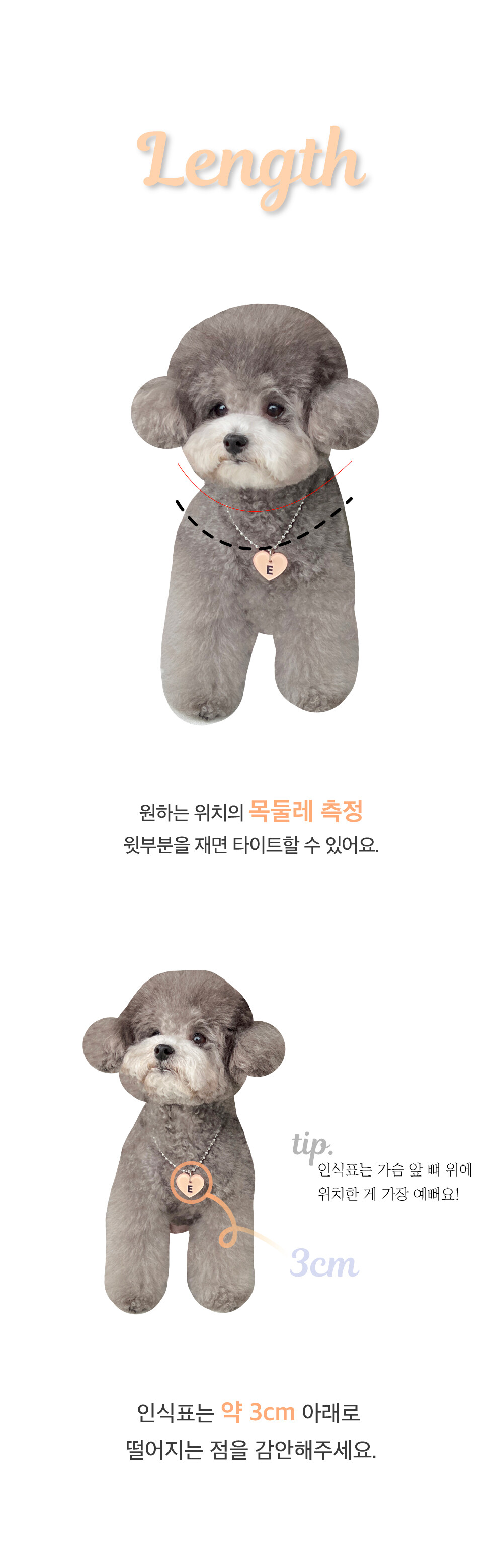 인식표는 목줄에 고정됩니다.