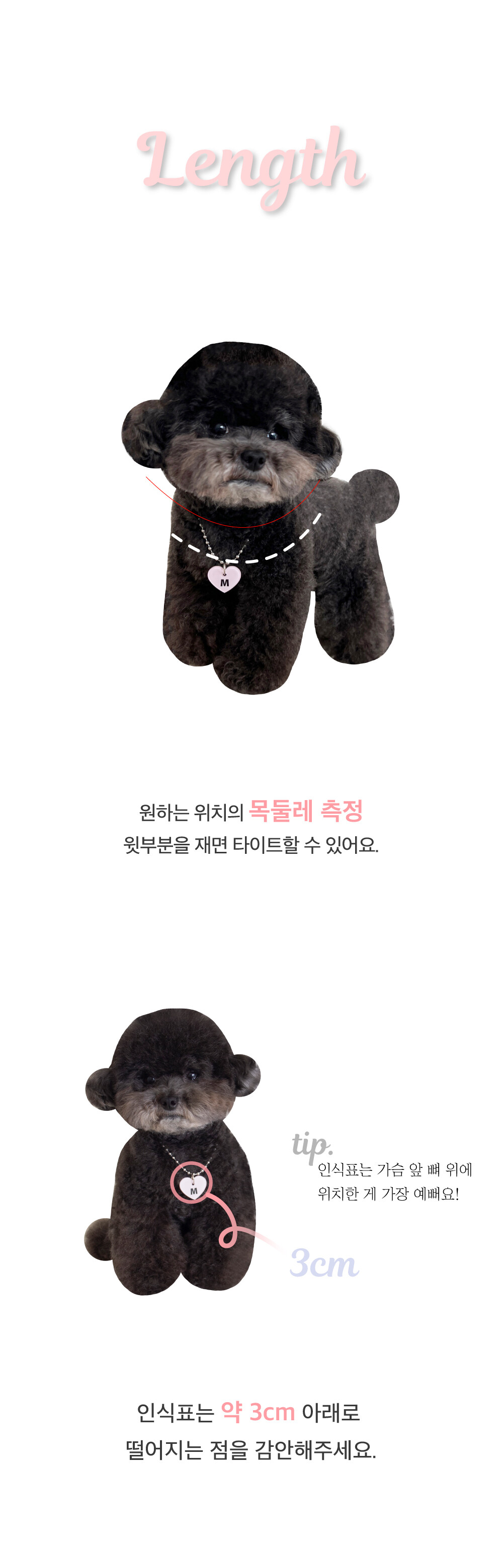 인식표는 목줄에 고정됩니다.