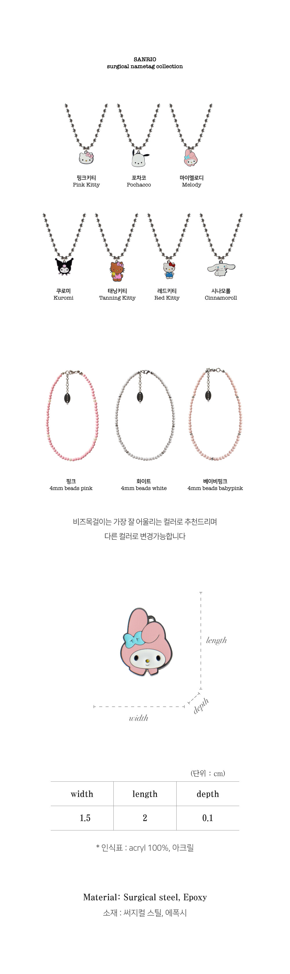 01 목줄 : 써지컬기본 3mm, 써지컬기본 4mm, 써지컬체인 3mm, 선택안함 중 택1